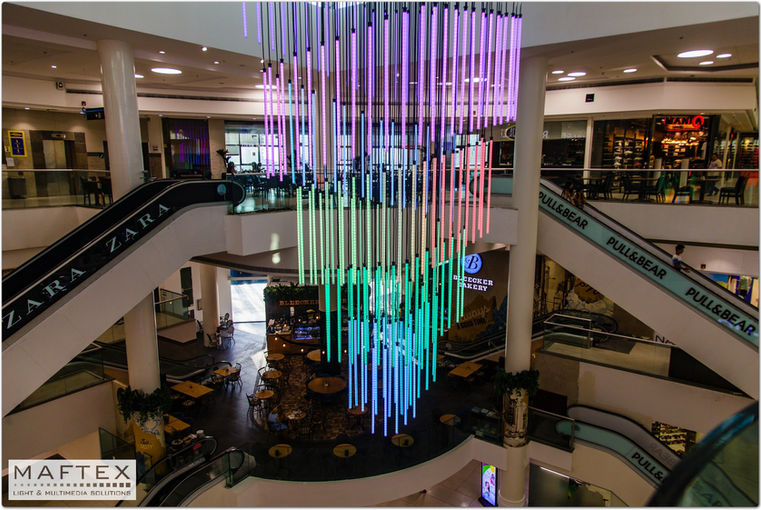 Planning and installation of tube led chandelier Design, planning and installation of the lighting to the central gate window